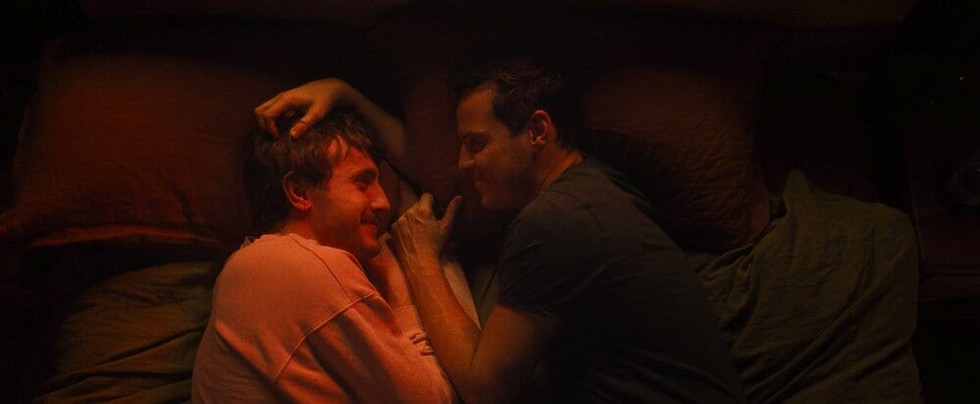 Anche perché la sceneggiatura che sta scrivendo si riferisce alla sua famiglia, Adam rivà continuamente con il pensiero a quella maledetta notte di Natale di 30 anni prima, in cui i genitori (Jamie Bell e Claire Foy) morirono uscendo di strada con l’auto mentre tornavano da una serata con amici. Soffre ancora per la loro assenza, anzi proprio mancanza in senso fisico e affettivo e gli vien voglia di visitare quella sua casa d’infanzia ormai disabitata a Croydon. Lì, bussando all’ingresso, viene accolto dalla madre e dal padre tali e quali a quando li aveva persi, in pratica giovani come lui. Sembrano tre coetanei: cena con loro e promette di tornarvi. Rientrato nel suo appartamento, incontra di nuovo Harry e questa volta ricambia il suo interesse, iniziando così una vera e affettuosa relazione. In una delle sue visite alla casa dei genitori, pressato dalla madre in merito alle sue relazioni del momento, finalmente avverte il momento giusto per fare coming out e se lei in un primo momento non reagisce come lui sperava, è il padre che si mostra più comprensivo. Anzi ammette di rammaricarsi che, avendolo un po’ intuito quando lui da piccolo andava a scuola e subiva il bullismo omofobo dei compagni, anche violento, non aveva mai avuto il coraggio di sostenerlo e consolarlo quando lo sentiva piangere nella sua cameretta.