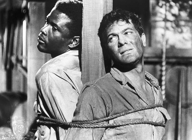 Tante volte si parla di chimica all’interno di una coppia di attori, ma questa volta siamo all’esemplificazione più chiara che si possa immaginare: la recitazione e quell’amalgama tra i due protagonisti è di prim’ordine e lo si nota in particolar modo nelle scene di maggior suspense, come l’attraversamento del fiume delle rapide che portano via e l’uscita dalla buca dalle pareti di fango. Tony Curtis è superlativo e Sidney Poitier è magistrale. La sua performance rende tutti gli eventuali difetti del film degni di essere ignorati poiché trasmette la rabbia e il dolore del suo personaggio con grande effetto. Era uno di quegli attori che sembravano sempre pazzi, il che si adattava perfettamente alla maggior parte dei suoi ruoli. La sua recitazione porta ogni spettatore a identificarsi e a prendersi cura del suo personaggio. Questo Noah è solo l’inizio di una carriera formidabile e non basterà mai elogiarlo a sufficienza. Il film inizia con la sua voce che canta un blues triste dei neri d’America e termina con il canto che riprende. Come un lamento e protesta contro le ingiustizie sociali della società malata di discriminazione.
