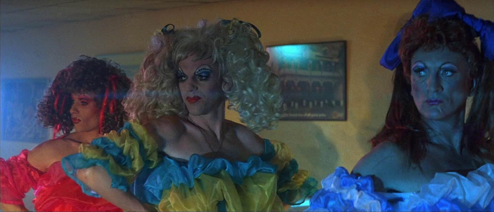 Il vero asso nella manica è Terence Stamp, che interpreta Bernadette, una transessuale elegante e disillusa che si unisce ai drag Mitzi (Hugo Weaving) e Felicia (Guy Pearce) per una tournée nel nulla australiano. Attenzione: non è una trasformista “da copertina”, anzi: ciglia pesanti, reggiseno imbottito alla buona… ma una classe innata che nessun gavettone può sabotare. Bernadette è il tipo che può stendere un bifolco con un pugno alla John Wayne e poi scolarsi un drink come Dean Martin. E nel film deve fare entrambe le cose, spesso per difendere i suoi compagni da un’umanità non proprio arcobaleno amichevole.